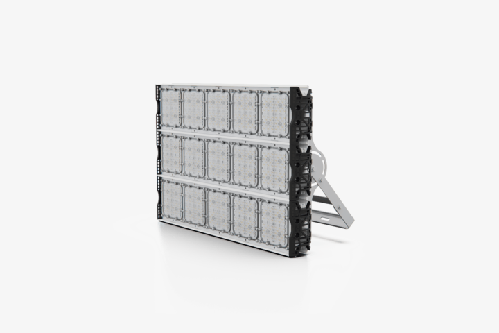 Прожектор светодиодный осветительный, представляющий собой группу светоизлучающих модулей, установленных на осветительной мачте, подключенных к одному выносному модулю питания.